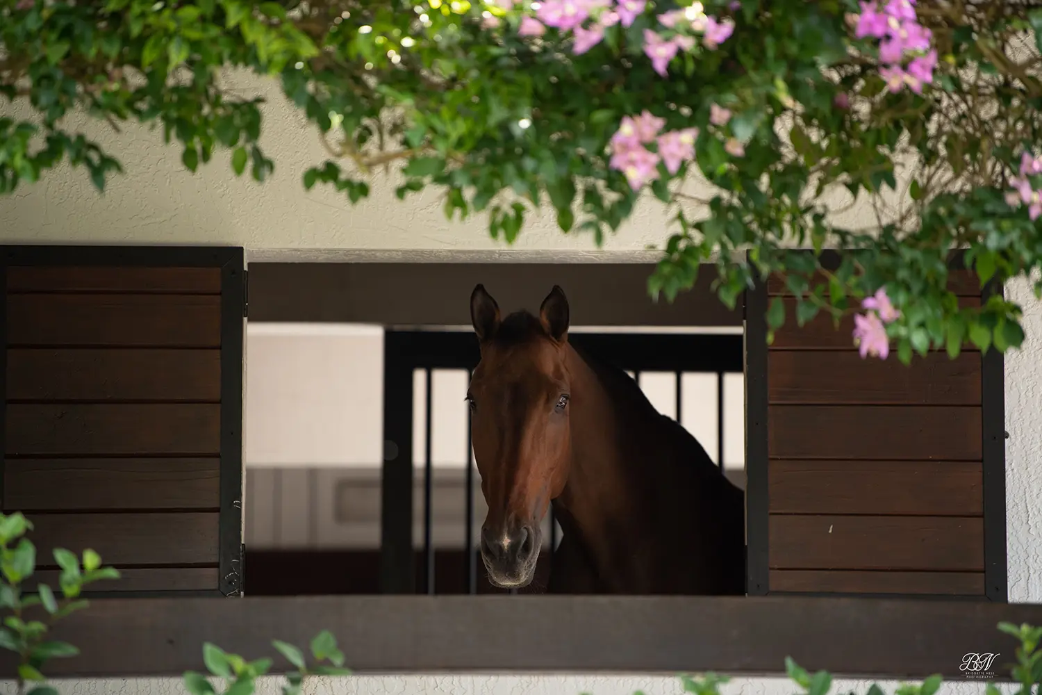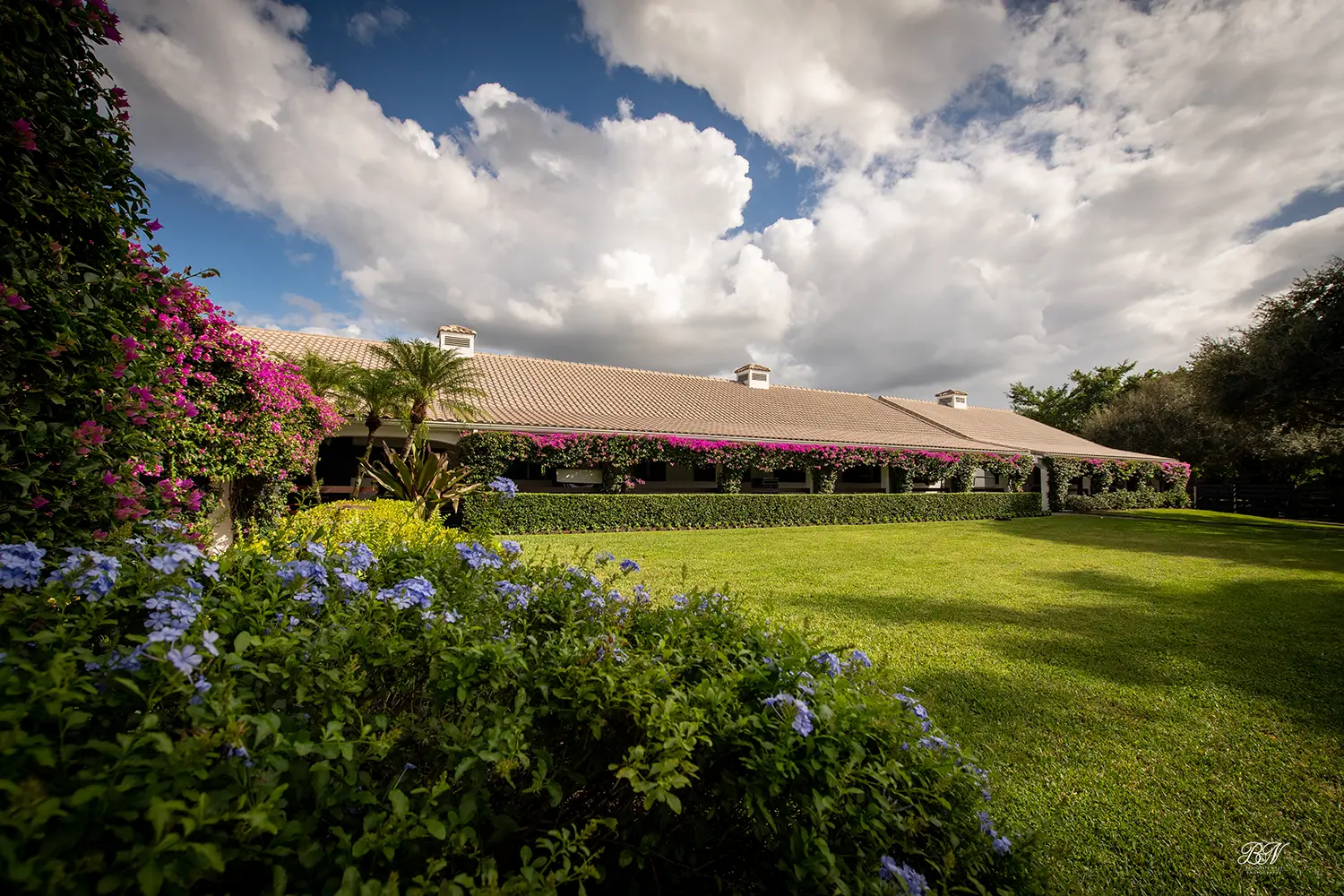 Our four-acre facility is situated at the perimeter of the Wellington International showgrounds. Here, horses escape the stress of staying on crowded grounds. Main jumper rings are an easy 10-minute walk and equine athletes come home after work to sleep in their own beds. Additionally, competitors and their family members can easily access the show by a five-minute golf cart ride or a leisurely stroll.
